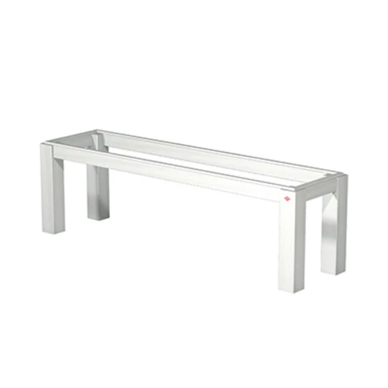 Naber Bankgestell B120, Aluminium Gestell im aktuellen Design, wahlweise mit Sitzfläche aus Echtholz oder Kunstleder. Profil Füße: 80 x 80 mm Traverse: 60 x 30 mm Maße mit Holzauflage: H 470 x B 1500 x T 400 mm Für Bestellungen ohne Sitzfläche Plattenstärke angeben.