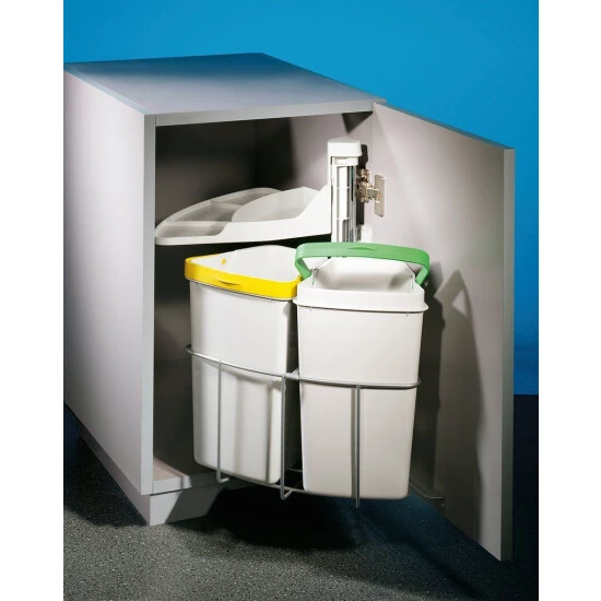 Abfallvolumen 18 (2 x 9) Liter, Technik: Schwenktechnik, Montage: Schrankboden/-wand