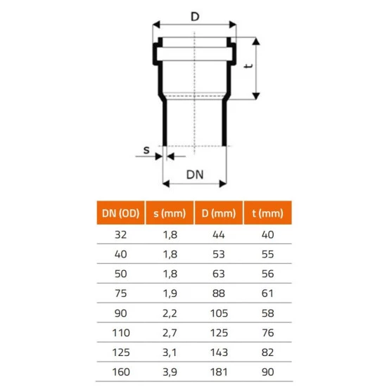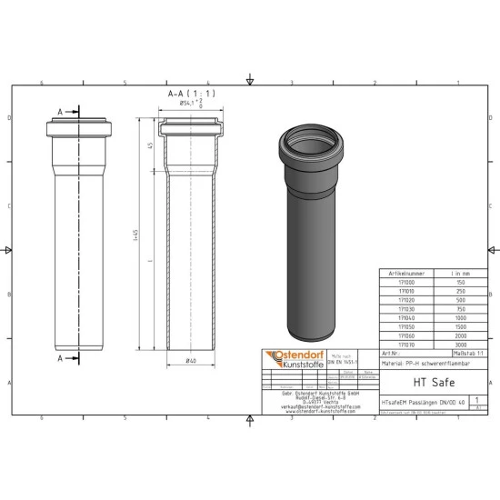 Montagefertig mit einseitiger Steckmuffe und eingelegter Gummidichtung, normgerecht gefertigt aus PP nach DIN 4102.
