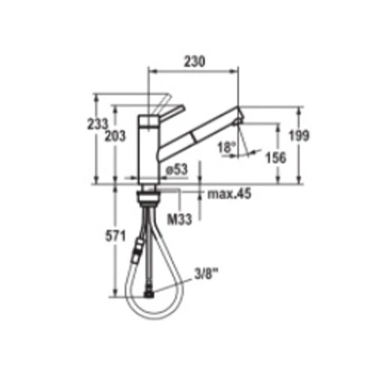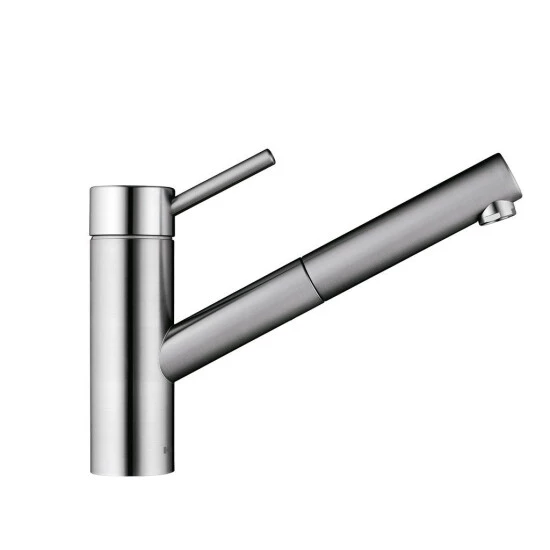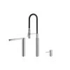Der Edelstahl Hebelmischer von KWC besitzt ein TouchProtect Prinzip dass vor Verbrennungen durch ein Zweischalenprinzip schützt und hat einen Auszugslauf mit einer länge von bis zu 700 mm. Die Schlauchdurchführung ist 130° schwenkbar. Der Wasserhahn hat flexible Anschlussschläuche und hat eine KWC Steuerpatrone L 39 – Universal mit Keramikscheibentechnik und einer stufenlosen einstellbaren Temperatur und Menge. Franke Artikelnummer: 115.0315.658; KWC Artikelnummer: 10.271.103.700 FL