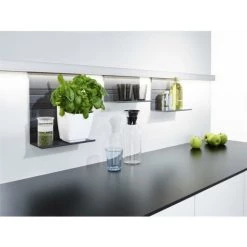 Ergänzt wird die Grundausstattung durch verschiedene Haken sowie Einzel- und Doppel-Rollenhalter. Außerdem gibt es einen ergonomisch konzipierten Messerblock und ansprechend gestaltete Köcher mit angeschrägter Basis, die nicht nur Küchenhelfer, sondern auch Kräutertöpfe aufnehmen.