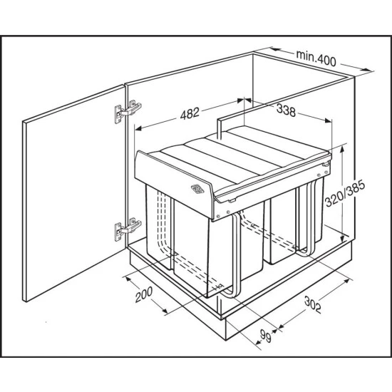 - Abmessungen B / T / H (mm): 338 / 485 / 385