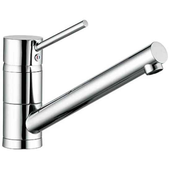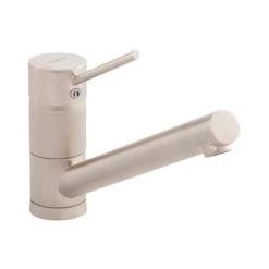 geschlossener Hebel, Einlochmontage, Durchflussmenge 5 l/min bei 3 bar, Cache-Luftsprudler M 16,5 x 1 bzw. Cache-Strahlregler M 16,5 x 1, Keramik-Kartusche mit Heißwasserbegrenzung, schwenkbarer Auslauf 360°, flexible Anschlüsse G 3/8″, Schnell-Montagesystem
