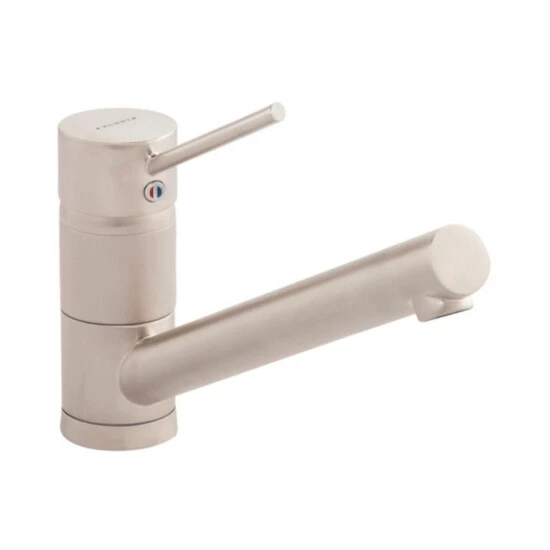 KLUDI SCOPE Spültisch-Einhandmischer DN edelstahlfinish Einlocharmatur, Hersteller Typ KLUDI GmbH&Co KG KLUDI SCOPE Spültisch-Einhandmischer Art. Nr. 33933. DN 10, Oberfläche 05 = aus Messing verchromt / 96 = Messing in edelstahlfinish, Ausführung wie folgt: Spültisch-Einhandmischer DN 10, mit schwenkbarem Auslauf mit 360Grad Schwenkbereich, mit geschlossenem Betätigungselement, Ausladung Betätigungselement in mm 92, mit Cache Luftsprudler M 16,5 x I, Geräuschverhalten DIN 4109 Gruppe I, Prüfzeichen P-IX 19449/IO, Durchflussklasse A (max. 0,25 l/s), Ausladung in mm 200, mit Schnell-Montagesystem, mit flexiblen Anschlussdruckschläuchen G mit DVGW (W543/KTW-A W270) KIWA / CSTB / WRAS Zulassung Länge in mm mit Keramik Kartusche mit Heißwasserbegrenzung D 35 mm, für Bohrlochdurchmesser D in mm 32, Auslaufhöhe in mm 106/138, h ges. in mm 122/152, für geschlossene Trinkwassererwärmer, Durchflusswassererwärmer, PN 10,