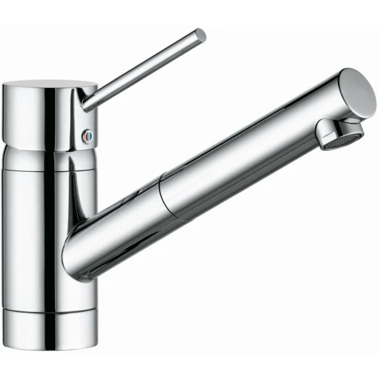 geschlossener Hebel, Einlochmontage, Durchflussklasse A, Luftsprudler M 22 x 1, Keramik-Kartusche mit Heißwasserbegrenzung, eigensicher gegen Rückfließen, schwenkbarer Auslauf 110°, herausziehbar, Schaftbefestigung, Kupferrohre 10 mm