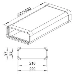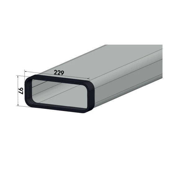 NABER SF-VRO 150 Flachkanalrohr, Lüftungsrohr, verzinkter Stahl, L 1000 mm. Lüftungsrohr, einkürzbar, Anschlussmaß Metallkanal 216 x 83 mm (mit Dichtung), 2 SF-Profildichtungen vormontiert, nach Entfernen der Profildichtung ist der Anschluss an einen Kunststoffflachkanal möglich.