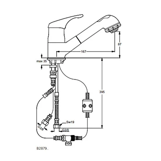 Küchenarmatur MelohStart mit ausziehbarer Geschirrbrause, Niederdruck B2879AA
