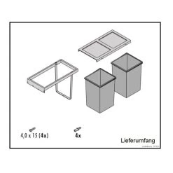Die Lieferung umfasst den Abfallsammler Einbau mit Montageanleitung. Schubkasten und Möbel werden zum besseren Verständniss dargestellt, gehören jedoch nicht zur Lieferung.