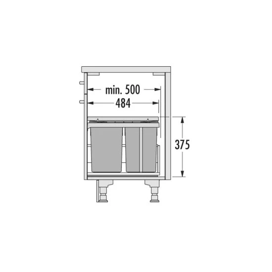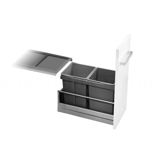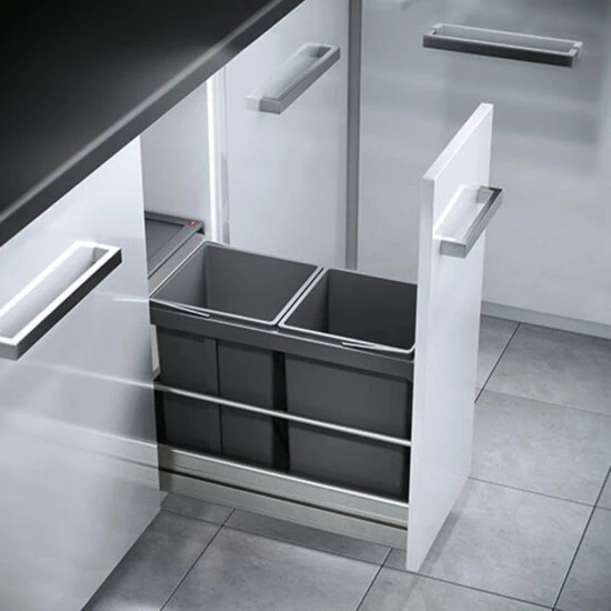 Abfallvolumen 30 (2 x 15) Liter, Technik: für vorhandene Vollauszüge, Montage: auf Tablarauszug oder im Schubkasten