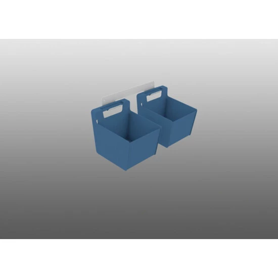 Hailo Utensilienbehälter, 2-fach mit Wandhalter. Zum Einhängen und Herausnehmen, für 600 mm Schrankbreite, zum Anbau außen am Schrank oder an der Wand, korrosionsfest beschichtetes Stahlblech, weiß, Kunststoffteile blau, 241 x 436 x 198 mm (H x B x T)