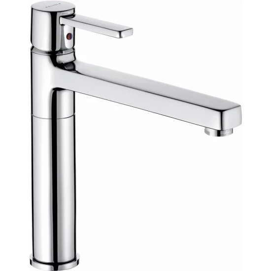 geschlossener Hebel, Einlochmontage, Durchflussklasse A, Luftsprudler M 24 x 1, Keramik-Kartusche, schwenkbarer Auslauf 360°, flexible Anschlüsse G 3/8″