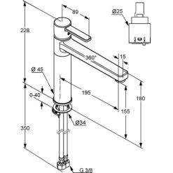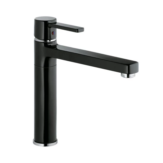 geschlossener Hebel · Einlochmontage · Durchflussklasse A · Luftsprudler M 24 x 1 · Keramik-Kartusche · schwenkbarer Auslauf 360° · flexible Anschlüsse G 3/8″ Weitere technische Eigenschaften: · Anschluss Vorlauf Schlauch (Verschraubung) · Anschlussmaß Zufuhr 3/8 Zoll · Anzahl der Armaturenlöcher 1-löchig · Anzahl der Griffe eingriffig · Aufbauhöhe gesamt 230mm · Aufbauhöhe Unterkante Hahnauslass 155mm · Ausführung Ablauf drehbar oben · Auslauftyp gegossen · Ausziehbarer Einlauf mit Perlator Nein · Grundfarbe schwarz · Hahn einklappbar (Bajonett) Nein · Material Hahn Messing · Mit Absperrventil für Anschluss externer Nein · Mit Griffen Ja · Mit Rosetten Nein · Mit Temperaturbegrenzung Ja · Mit Umstelleinheit Nein · Mundstück Wasserhahn Strahlregler · Niederdruckausführung Nein · Oberflächenbehandlung poliert · Oberflächenschutz beschichtet · Schließmechanismus Kartusche keramisch · Volumenstromklasse A · Vorsprung Ablauf 210mm